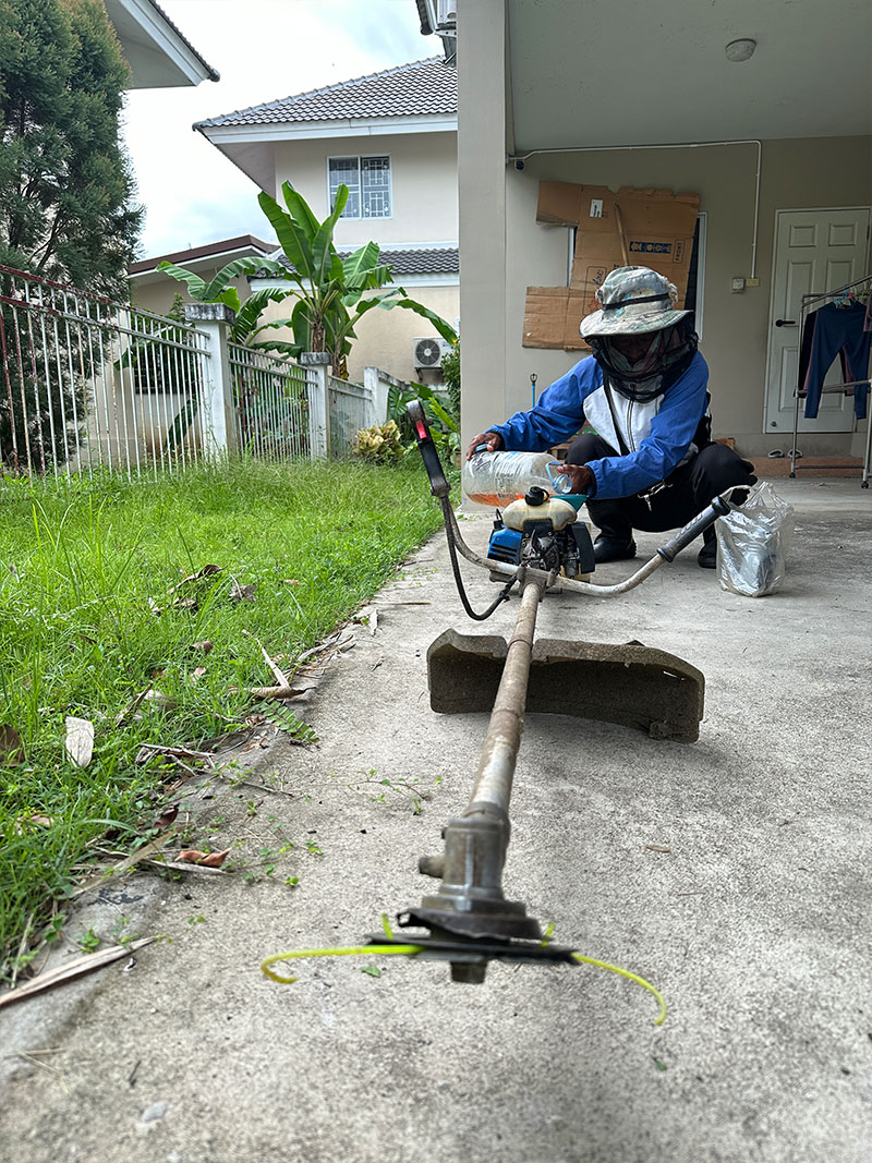 พักแป๊บนึง ช่วงเติมน้ำมันเครื่องตัดหญ้า